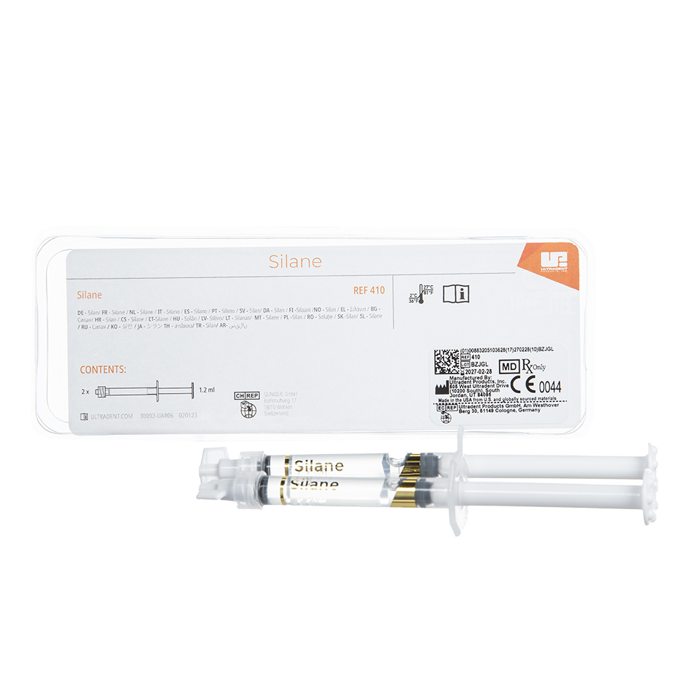 To-komponent silanopløsning til vedhæftningsfremme mellem keramik og plast, især ved facade-reparationer og fastgørelser. Påføres på den (med Porcelain Etch ætsete) keramiske overflade, derefter påføres Bonding Resin og restaureringsmateriale.